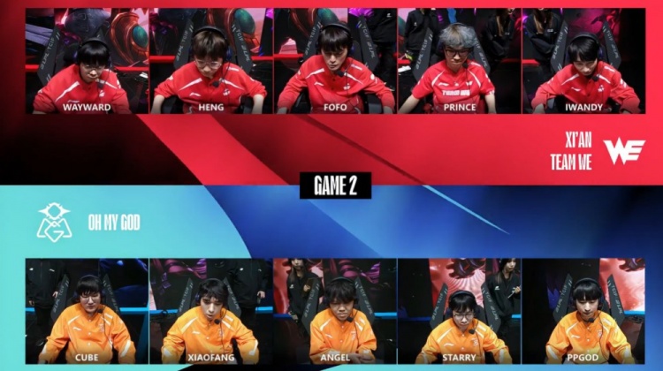 第二局前期野区团战Heng独自冲进人群先被带走,OMG上中进场收割,OMG打出2换3拿到前期优势。中期河道团战Angel妖姬三杀,OMG打出0换4收掉大龙经济优势扩大到7k。紧接着下路团战Angel再斩三杀,OMG后续再收大龙经济优势来到1w以上。最终OMG下路拉扯WE击杀对手两人后,冲上WE高地轻松一波推平基地,以2-0的比分拿到开门红。