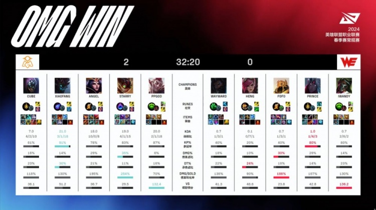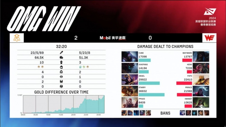 直播吧1月23日讯 2024LPL春季赛第一周第二日的首场比赛,由OMG对阵WE。