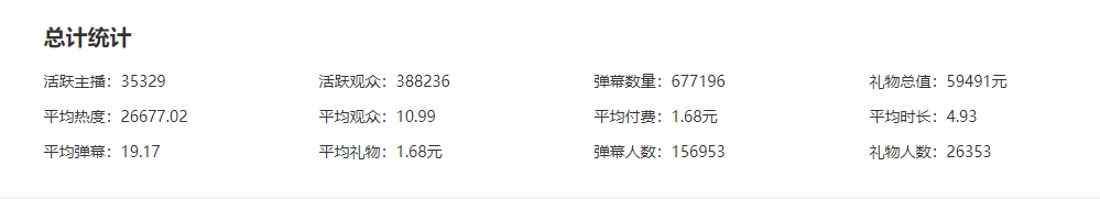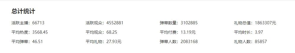 根据直播数据网站统计,昨日(1月25日)在斗鱼平台有83349名主播开播,其中为签约公会的人数达到了66713人,他们一共贡献了1863307元的礼物流水,总活跃观众4552881人。