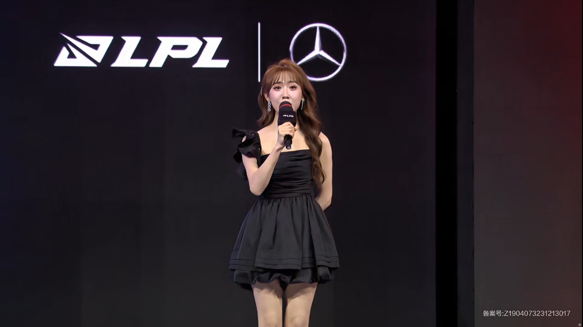 LPL今日女主持人Baobao出场:火辣黑色连衣裙+肉色丝袜😻