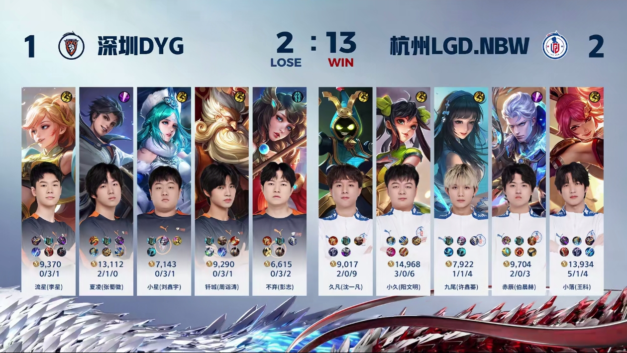 直播吧2月1日讯 2024KPL王者荣耀职业联赛春季赛继续进行,今日的次场比赛由杭州LGDNBW 对阵深圳DYG。