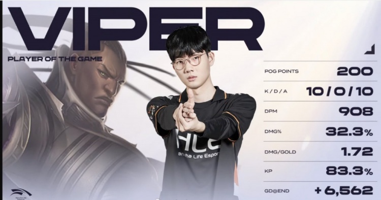 HLE:上单Doran、打野Peanut、中单Zeka、下路Viper、辅助Delight