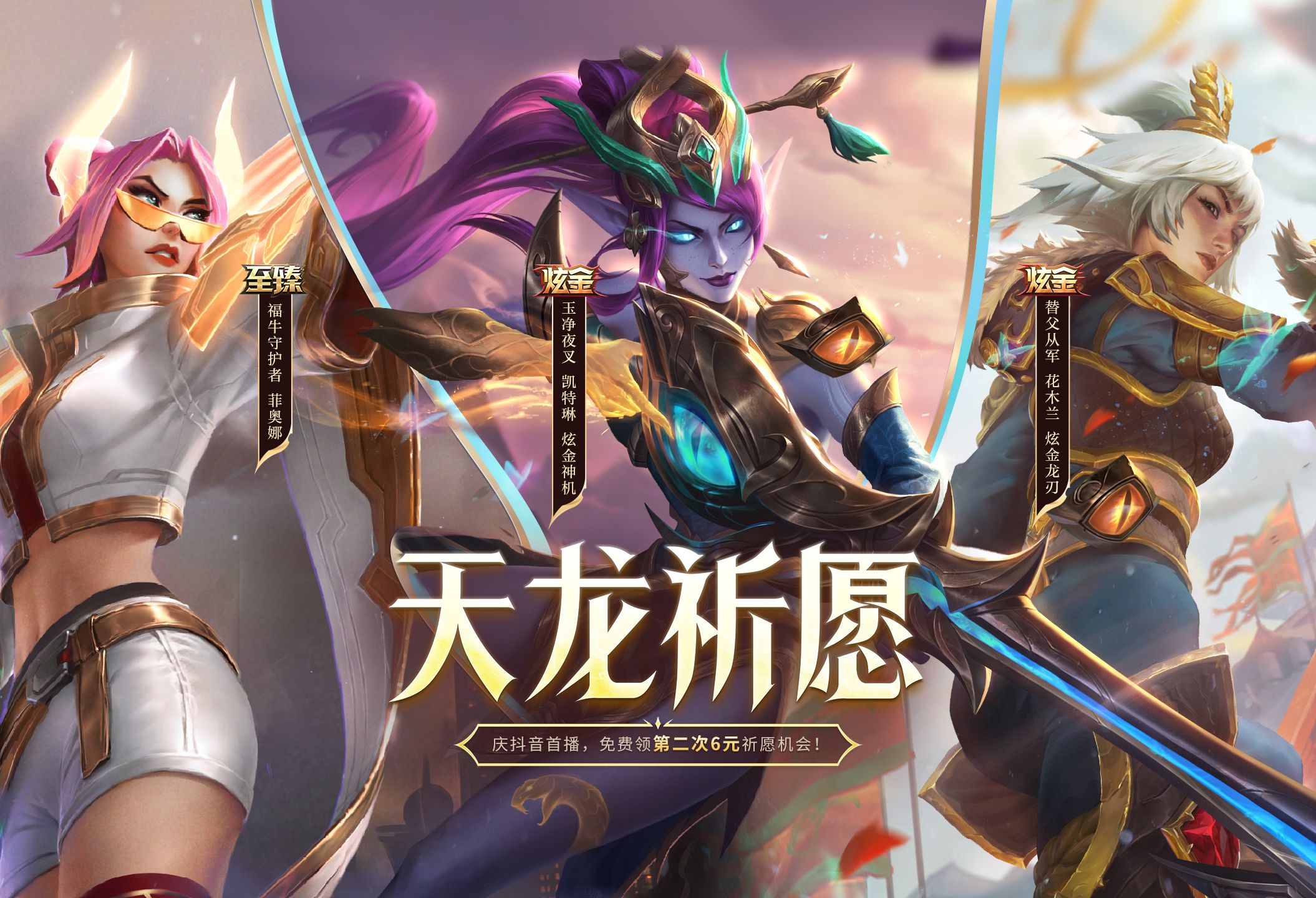 直播吧2月5日讯 今日英雄联盟官方,为感谢大家的喜爱,同时庆祝今日英雄联盟抖音首播上线,天龙祈愿活动将为所有召唤师额外发放1次【6元祈愿】机会,登录活动页面即可使用。