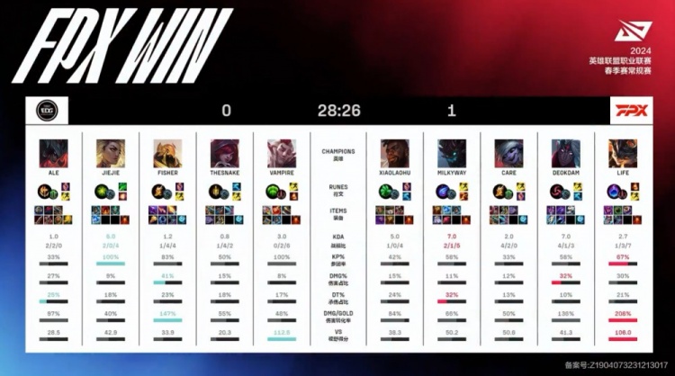 红色方FPX:Xiaolaohu奎桑提、milkyway茂凯、Care小炮、Deokdam韦鲁斯、Life兰博