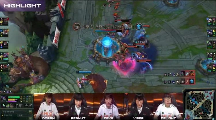 红色方HLE:Doran卡蜜尔、Peanut猪妹、Zeka阿卡丽、Viper赛娜、Delight塔姆