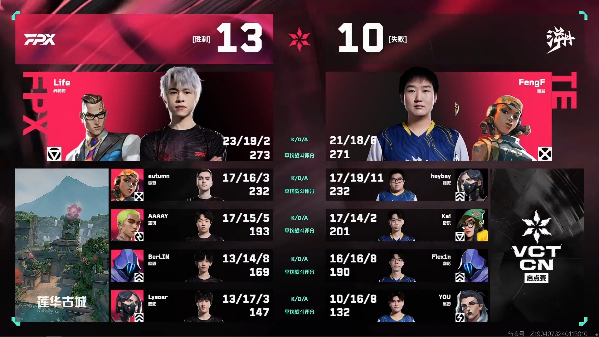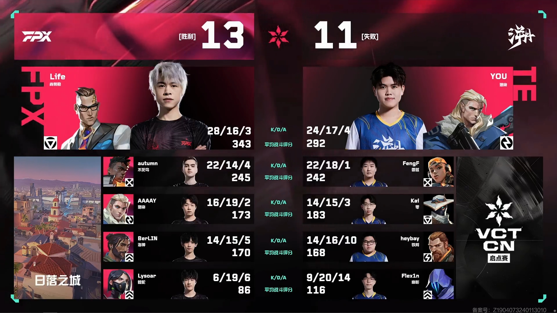 下半场攻守转换,FPX在autumn的三杀下赢下手枪局并利用经济优势将比分反超,比分来到8:7,久未得分的TE叫出暂停调整策略。暂停结束,双方开始战入焦灼,互拿比分,直到第二十二回合Life率先破局拿到四杀帮助FPX来到盘点。最终FPX在BerLIN和Life拿到人数优势的情况下顺利赢下了图一。MVP给到了Life。