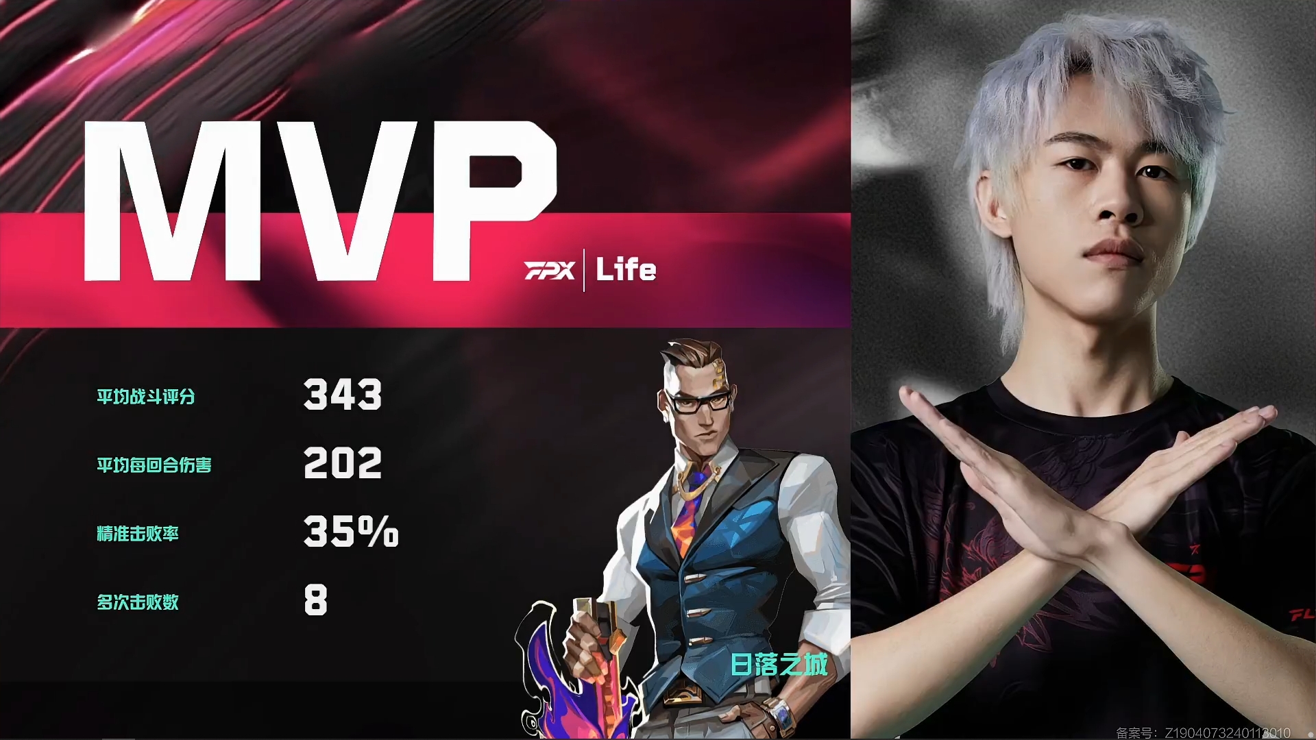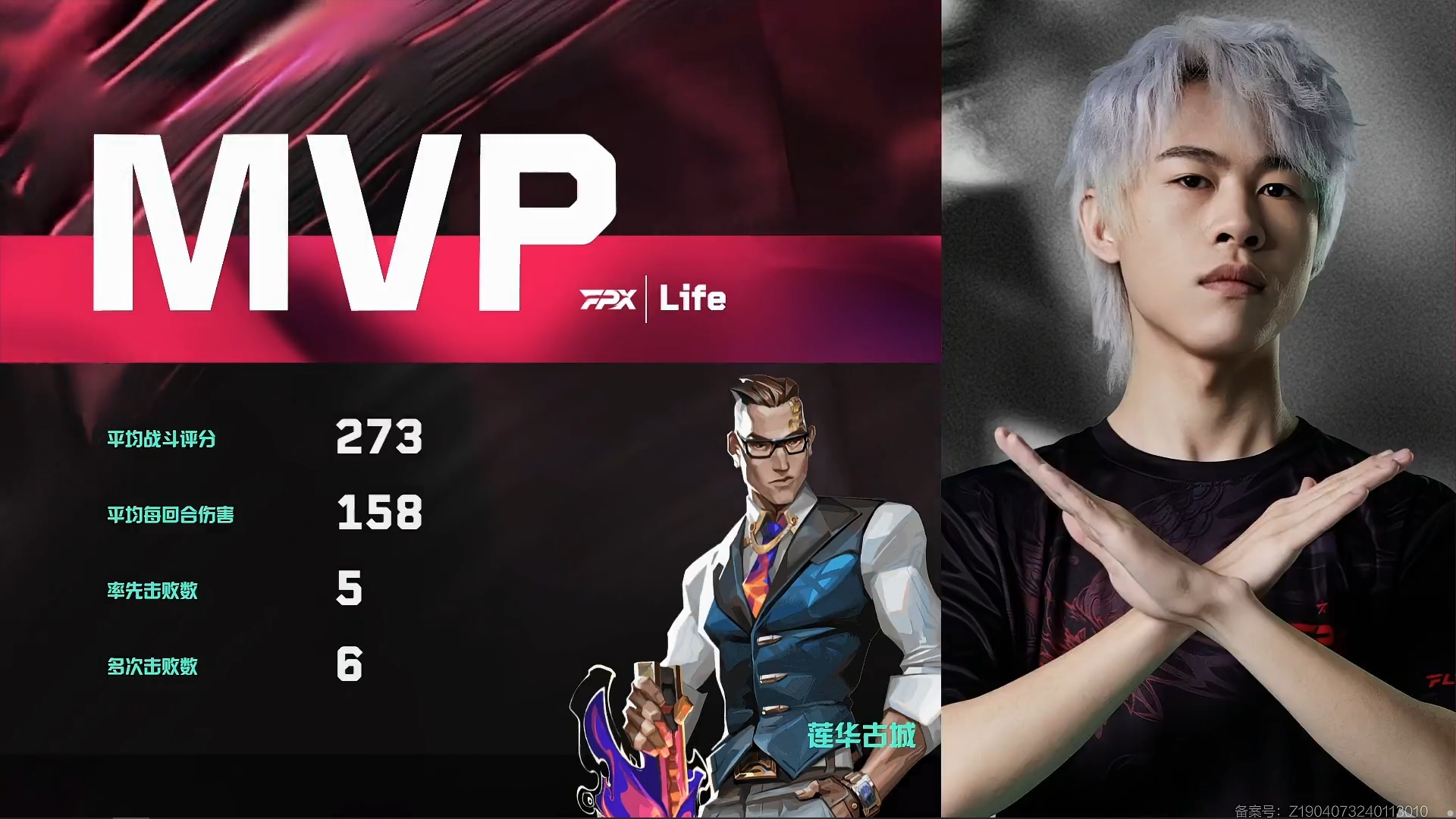 下半场攻守转换,FPX利用顽皮搭档完成回防赢下手枪局并利用经济优势再得一分,随后TE多次快攻C区利用道具抢下控制权追回比分。比分来到10:8,FPX叫出暂停尝试结束比赛。暂停之后,FPX再次利用道具组合完成反清,在第二十一回合拿到赛点,并在最后Life孤高火力的三杀下,FPX赢得了比赛的胜利。MVP给到了Life。