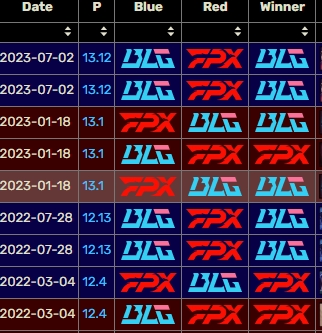 直播吧3月8日讯 今日LPL春季赛BLG成功击败FPX,他们在面对FPX时的历史战绩更新为四连胜。FPX上一次战胜BLG还要追溯到2022年的春季赛,彼时FPX让一追二击败了BLG。