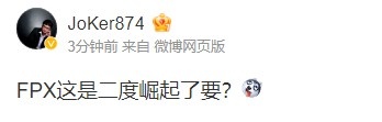 赛后前解说Joker微博发文感叹:“FPX这是二度崛起了要?”