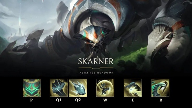 斯卡纳的普通攻击、Q技能和R技能会在一段时间内施加战栗效果。满层时,敌方英雄会在此期间持续受到百分比生命值的魔法伤害。