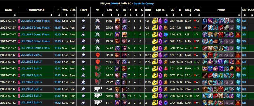 0909是一名2003年出生的年轻选手,于2020年开启自己的职业生涯,期间在EDG.Y征战了2年左右,在2021LDL夏季赛被评选为三阵中单。