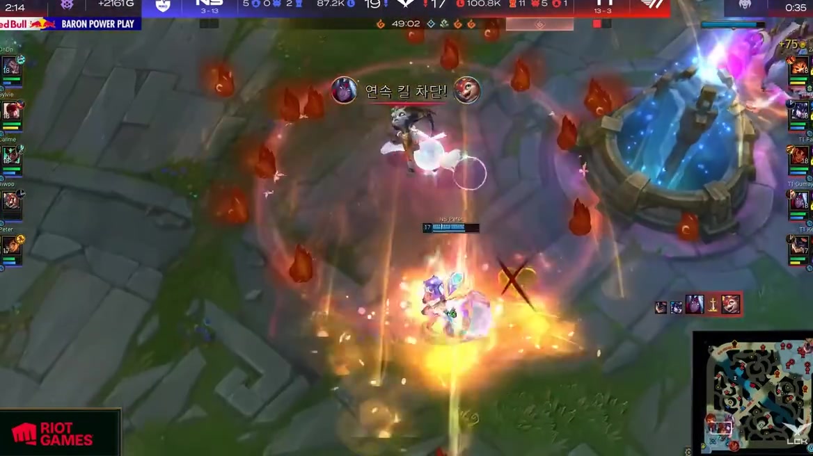 早前的远古龙魂团战中,Gumayusi一波挽弓穿死盲僧并斩杀远古龙👇