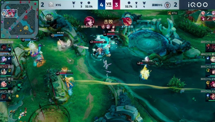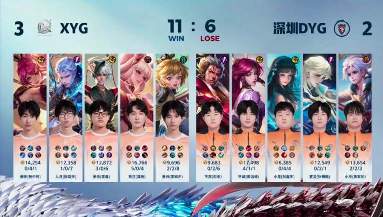 【22:10】双方围绕龙王爆发团战,海诺进场和花木兰互换,后续XYG抓到机会切死伽罗,XYG将DYG团灭拿下比赛胜利!