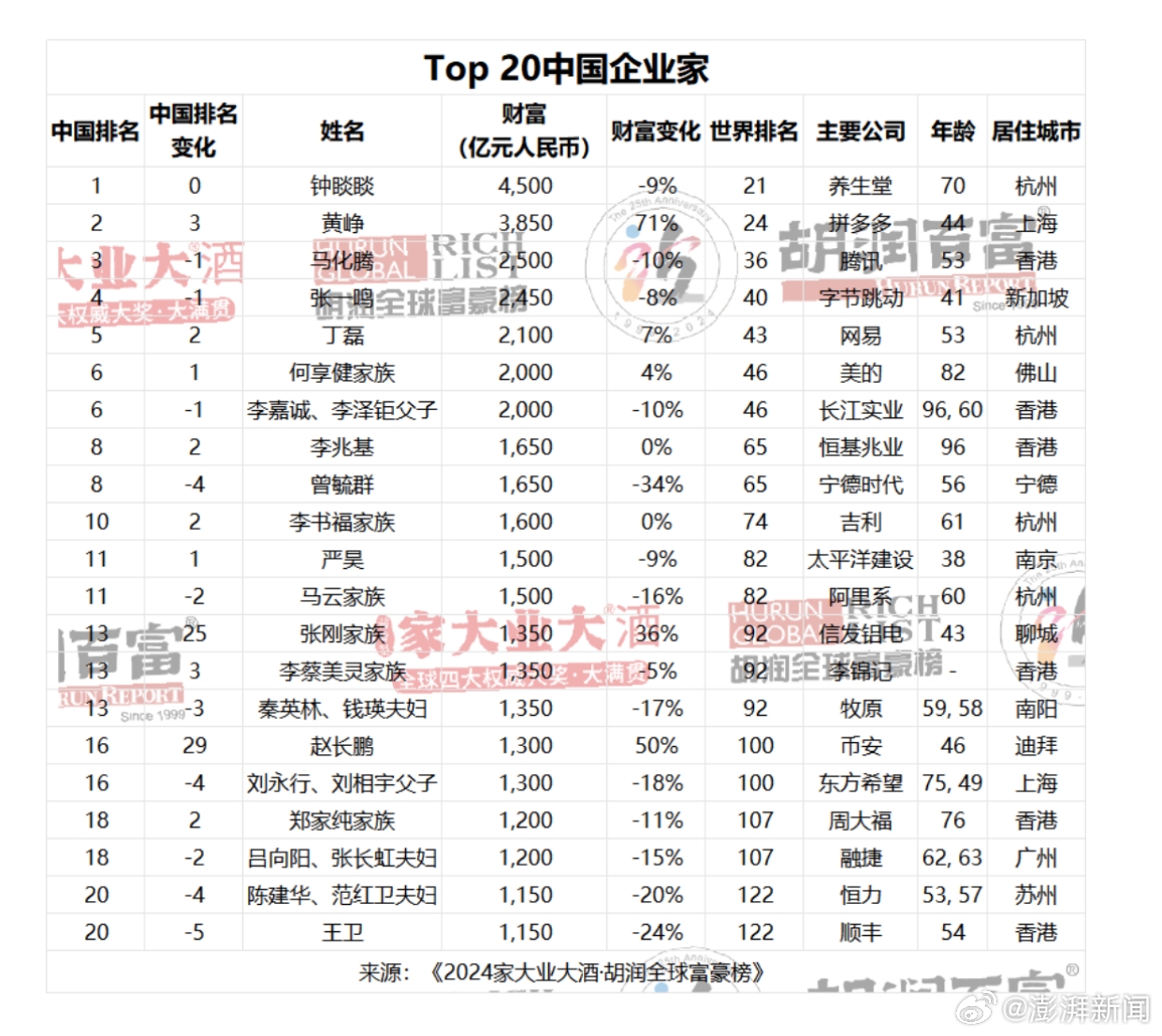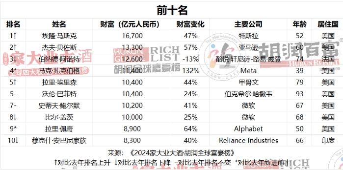 直播吧3月25日讯 今日胡润研究院发布《2024胡润全球富豪榜》,财富计算的截止日期为2024年1月15日。这是胡润研究院连续第13年发布“全球富豪榜”。
