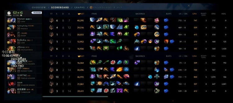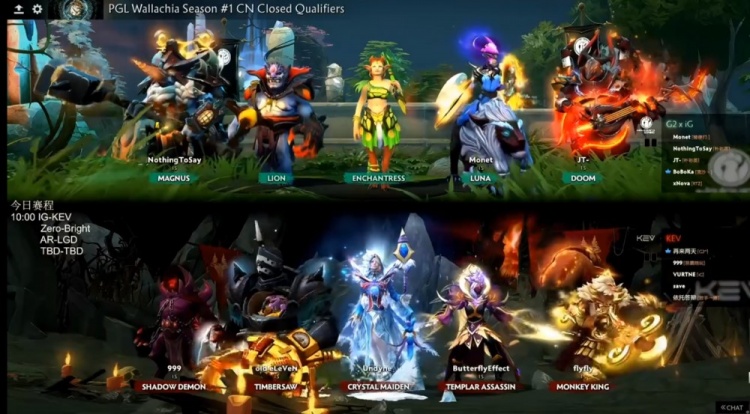 天辉G2xiG:NothingToSay猛犸、Boboka莱恩、xNova魅惑魔女、Monet露娜、JT末日使者