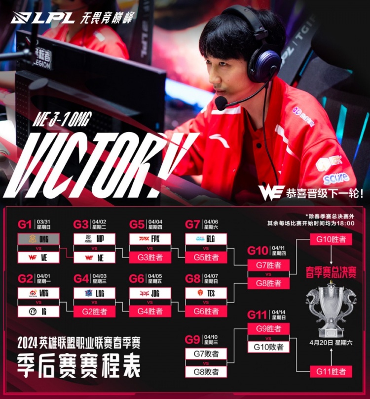 LPL官方:让一追三,首开得胜!恭喜WE晋级下一轮!