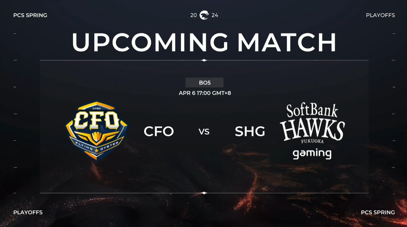 败者组决赛将在4月6日举行,日本LJL赛区的SHG将交手PCS赛区的CFO。本场比赛胜者将晋级总决赛,交手PSG。