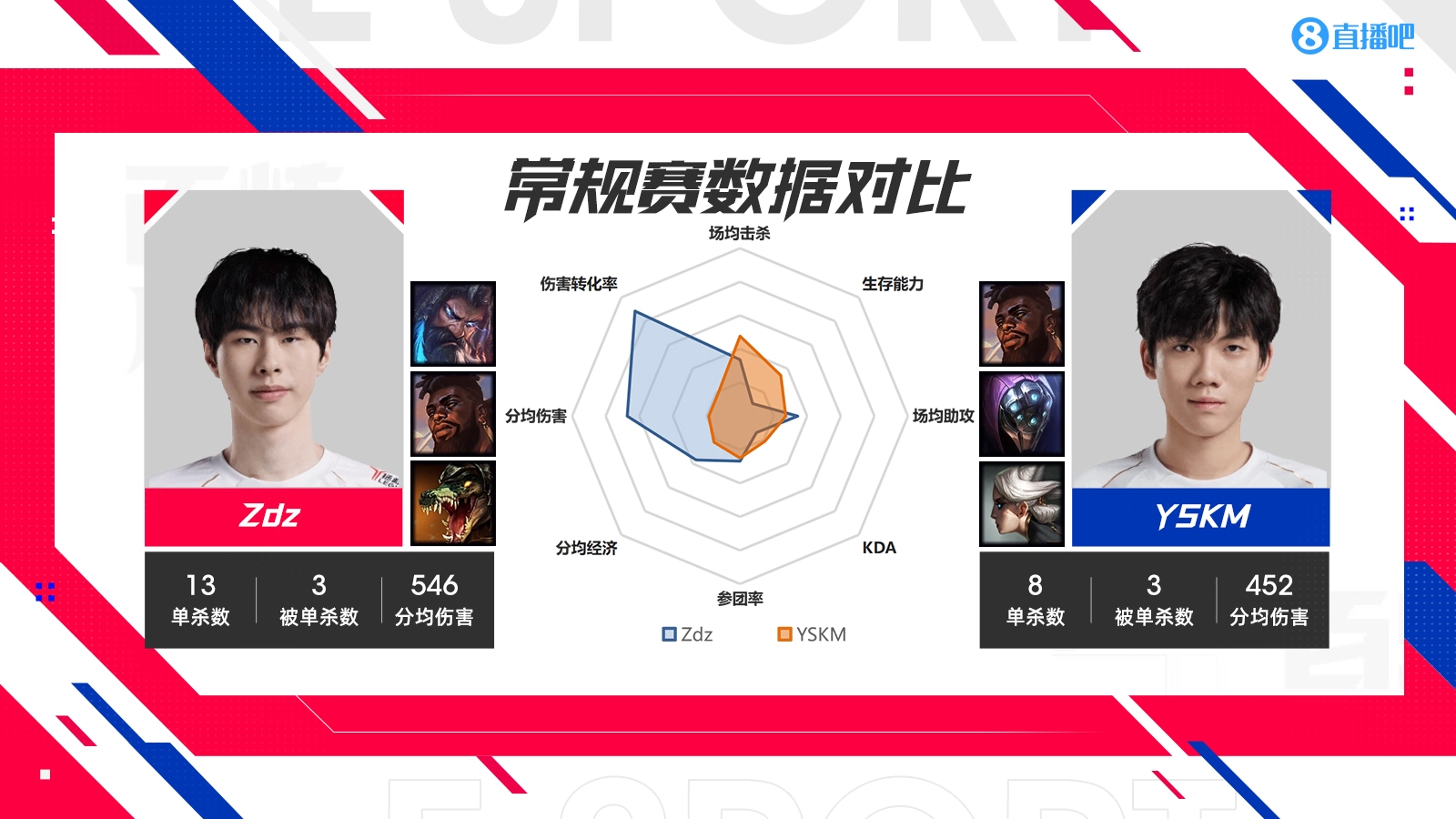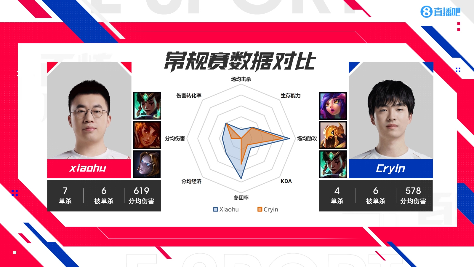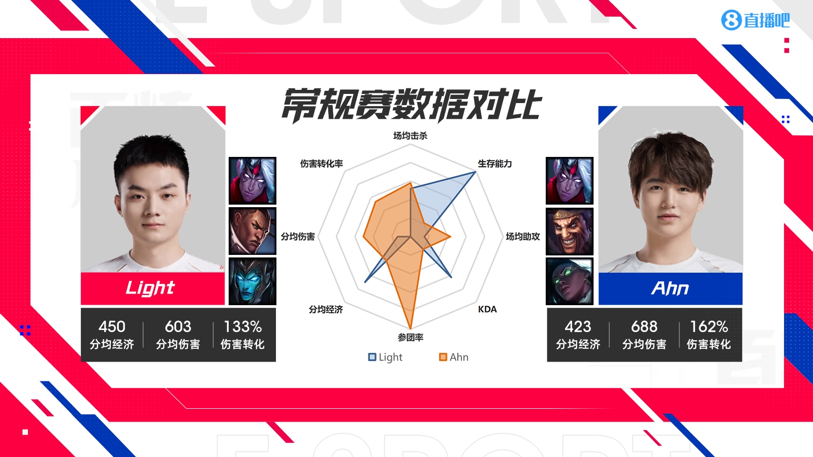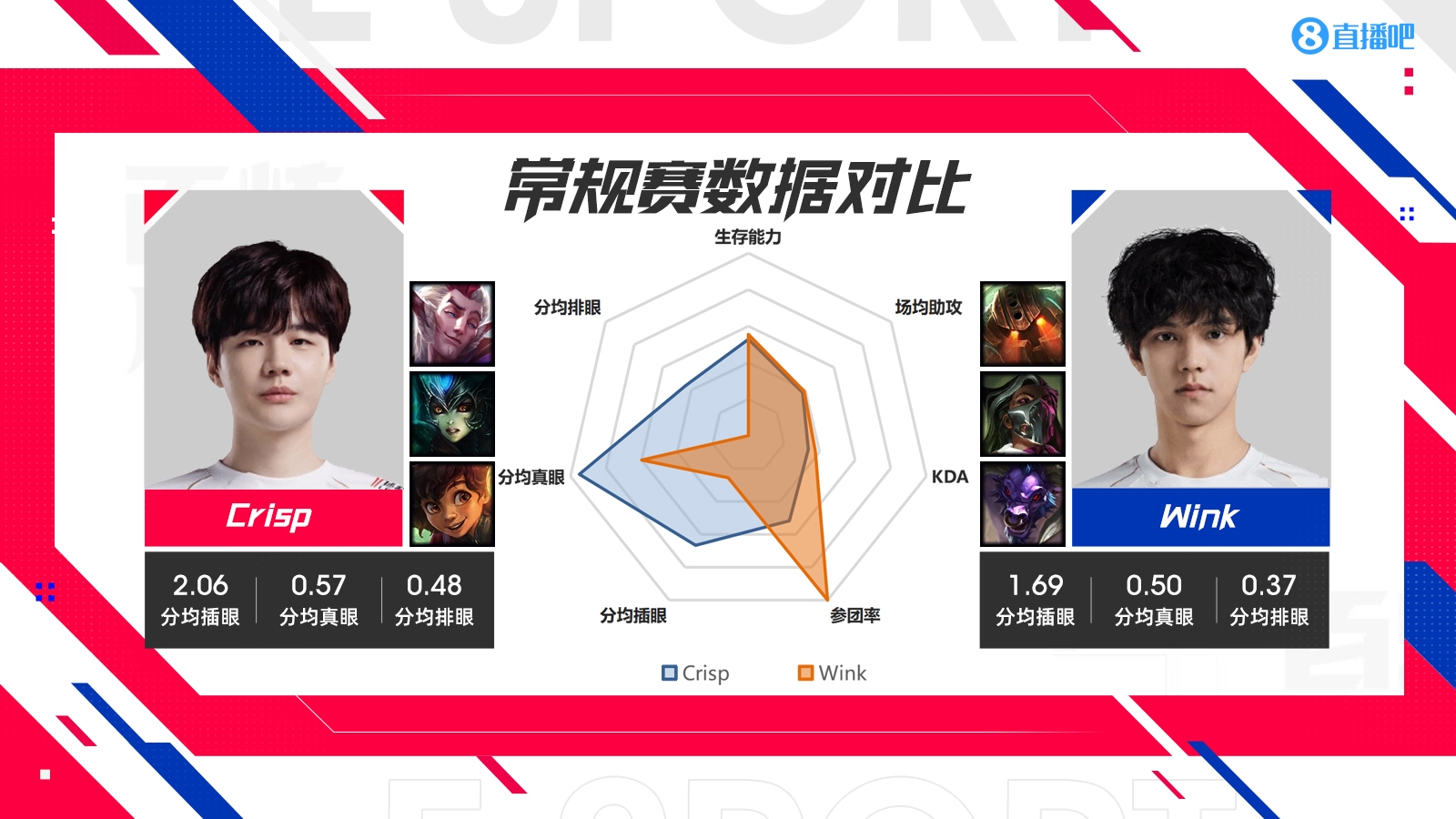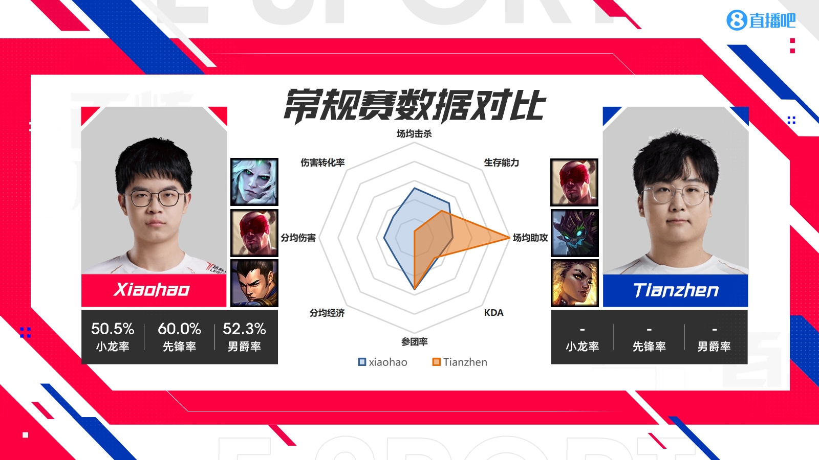直播吧4月1日讯 LPL春季季后赛已经打响,今日是两支老牌战队WBG与iG的对决,让我们一起来对比一下选手的数据情况。