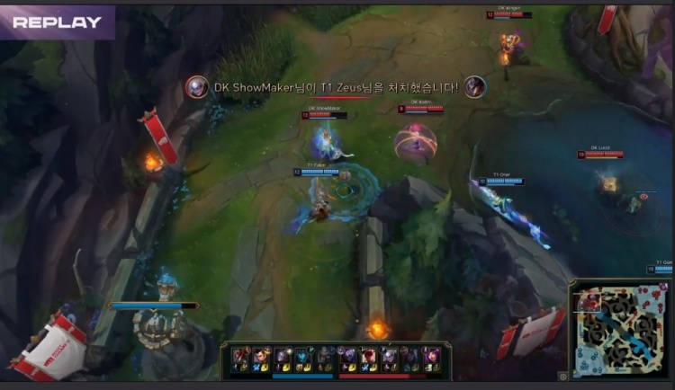 【11:15】T1下路组找到机会,主动出击成功线杀掉Kellin妮蔻!双方中单都交出TP之后无事发生!