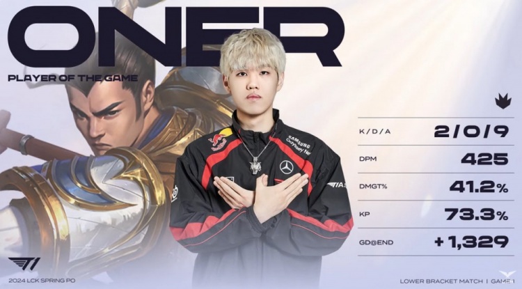 T1:上单Zeus、打野Oner、中单Faker、下路Gumayusi、辅助Keria