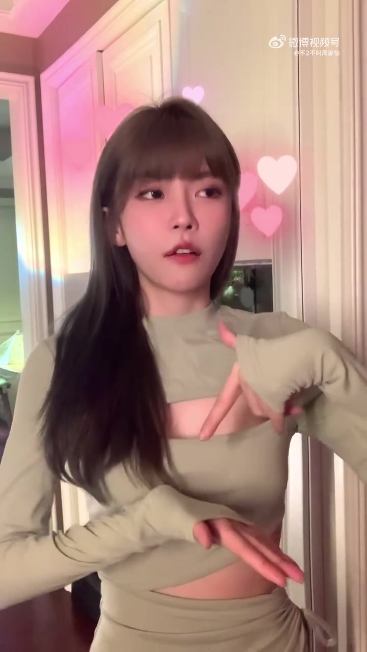 >周淑怡抖音分享手势舞:灰绿胸前开口紧身衣,甜妹造型可人😊