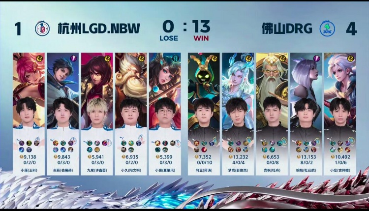 直播吧4月7日讯 2024KPL春季赛今日比赛是由佛山DRG对阵到杭州LGD.NBW!