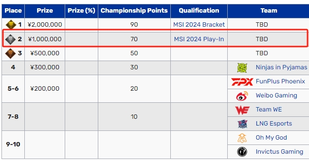 至此,BLG本届春季赛保底将收获70分的S14世界赛积分+100万人民币奖金!