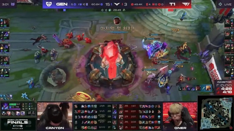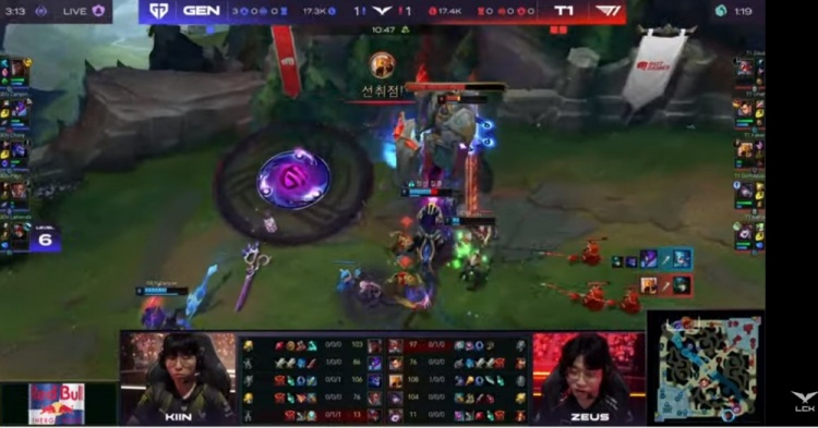 【19:01】GEN拿下第三条小龙!T1保护Faker沙皇推掉了上二塔!