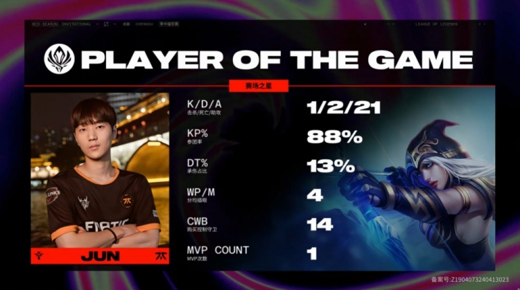 第一局前期GAM双人组换线到上路,但仅过了4分钟GAM双人组就回归下路,此时EasyLove落后Noah十个补刀。Jun艾希水晶箭百发百中,FNC依靠Jun的出色发挥连战连捷拿到4k经济领先。