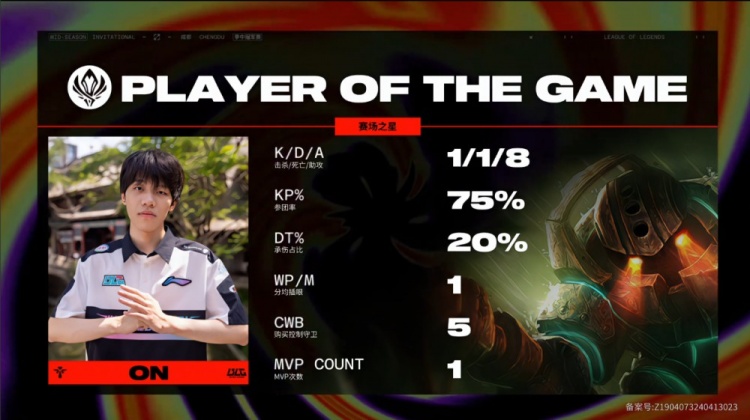 后期BLG在野区抓人,ON深海冲击锁定Faker将其钩回击杀后回头再钩Zeus,Keria也被ON钩到难逃一死,BLG打出0换4收掉大龙经济领先6k。