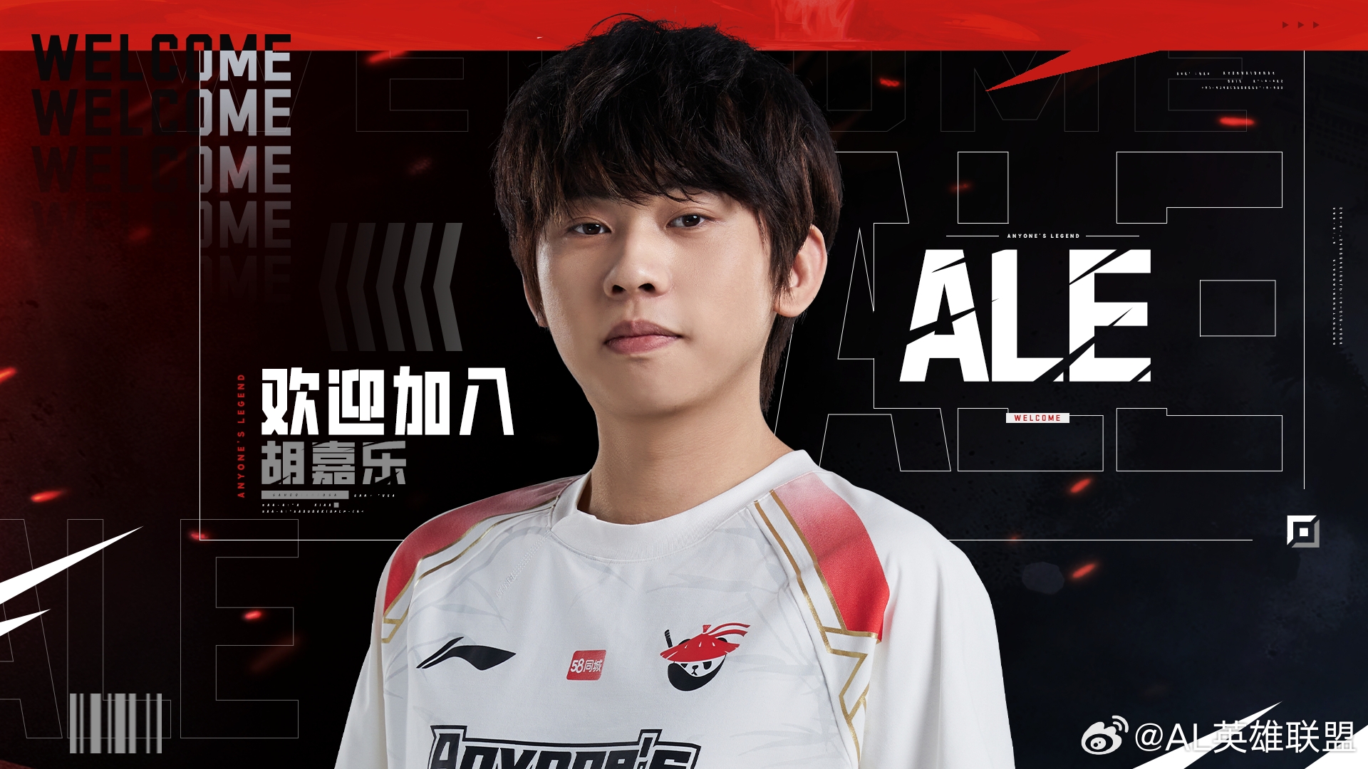 经过三方友好协商与沟通后,在完全尊重选手个人意愿的前提下,我们高兴地向大家宣布: 即日起,原上海EDG合创汽车英雄联盟分部选手胡嘉乐(ID:Ale)正式转会加入AL英雄联盟。