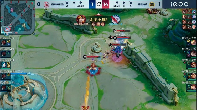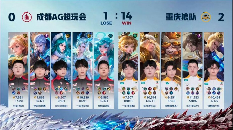 【15:00】狼队拿下暴君后直接强开AG,AG被击杀四人,狼队直接带着兵线推掉水晶拿下胜利!