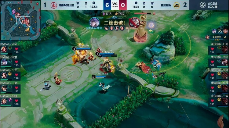 【12:40】张飞大招配合孙策大招直接强开,狼队直接被秒掉四人,AG拿下胜利!
