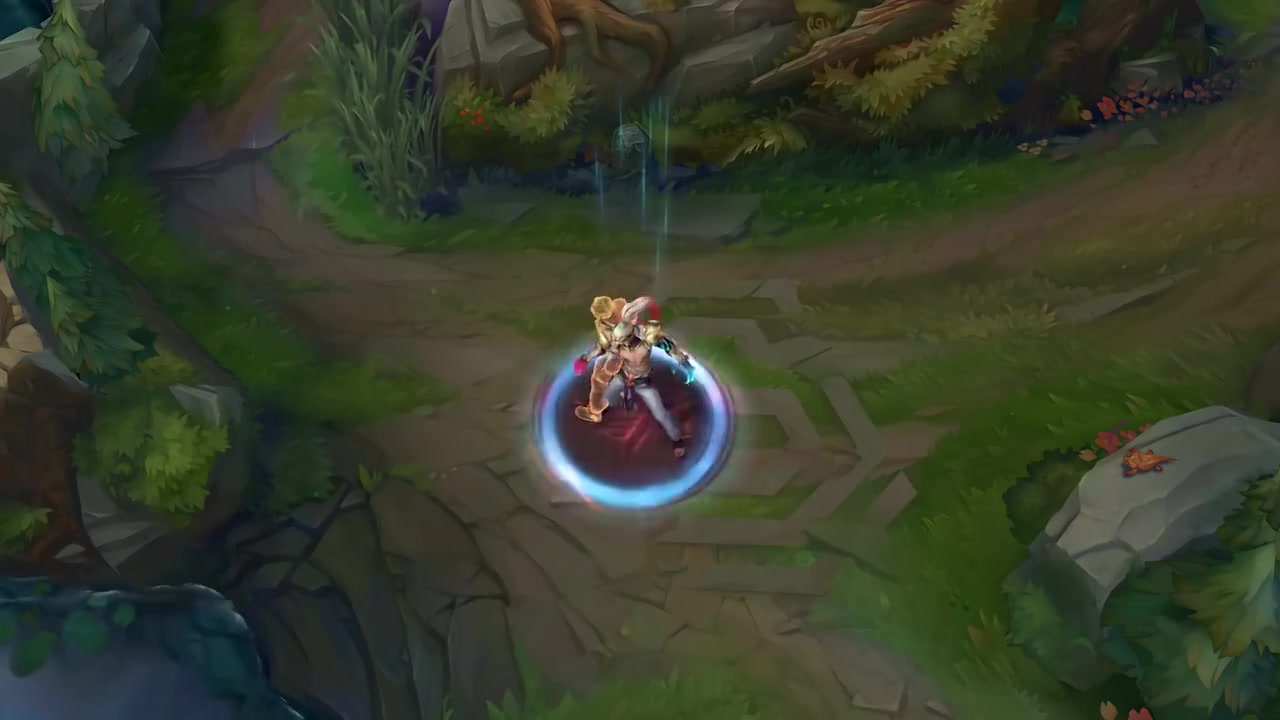 回城时李青立于T1队标之上,身后浮现SKT Bengi冠军皮肤身影,二人相视对指比武较量,随后李青披上队服外套复现Oner标志动作潇洒回城。李青身穿金色战甲,一头白发配合红色挑染,双手蕴藏两种不同力量。攻击和释放技能伴随红蓝两色火焰,天雷破时赤红火焰四溢,地面灼烧出T1队标熠熠生辉。