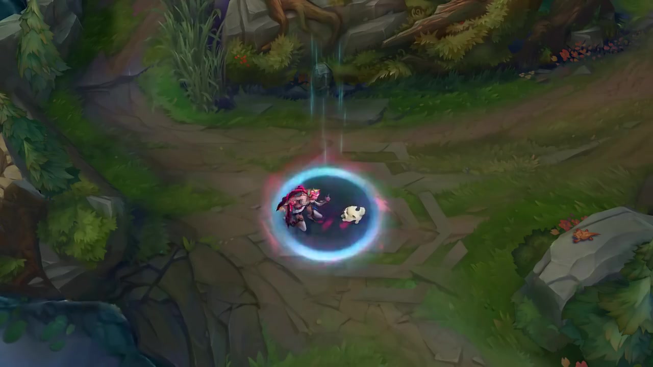 金克丝赤红的发色透露出狂野的力量,服装以白金主基调,点缀如火焰般炽热的红色以及璀璨的蓝色宝石。金克丝的炮弹发射后绽放出红色蔷薇,轻机枪的子弹缠绕蓝色电流,超究极死神飞弹爆炸浮现赤红色的T1队标。回城时,Gumayusi的狗狗嘟妮欢快地奔向金克丝,金克丝温柔抚摸后与狗狗击掌,空中飞起的奖杯由深邃的蓝色与高雅的银光构成,见证着无上的荣耀与辉煌。