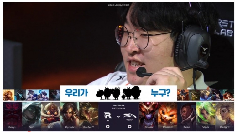 HLE:上单Doran、打野Peanut、中单Zeka、下路Viper、辅助Delight
