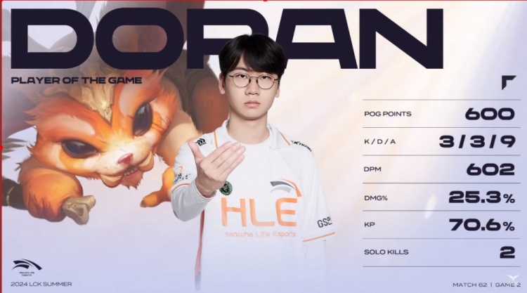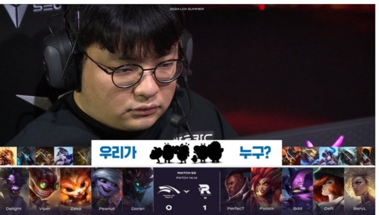 HLE:上单Doran、打野Peanut、中单Zeka、下路Viper、辅助Delight