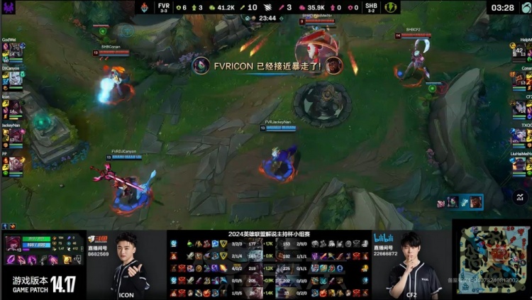 【14:10】佛耶戈上路与狗头再抓奎桑提得手,随后洛下路W抬起布隆,阿卡丽收掉人头,icon队经济领先4k。