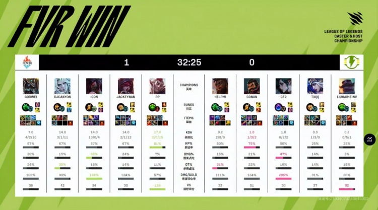 后期icon伤害爆炸融化米勒,各波团战均有人头入账,icon队中路打出0换5团灭赵志铭队后吃掉大龙,经济优势来到1w以上。最终icon队下路冲上高地,icon三杀收尾,人头数锁定在10个,icon队推平赵志铭队基地拿到比赛胜利。
