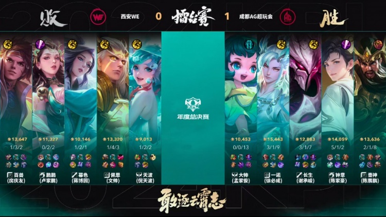 【20:30】元流之子卡住WE四人位置,随后干将扎C,WE被AG打出团灭,AG拿下比赛胜利!