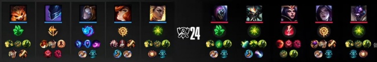 红色方BLG:Bin贾克斯、Xun蝎子、knight妖姬、Elk卡莎、ON牛头