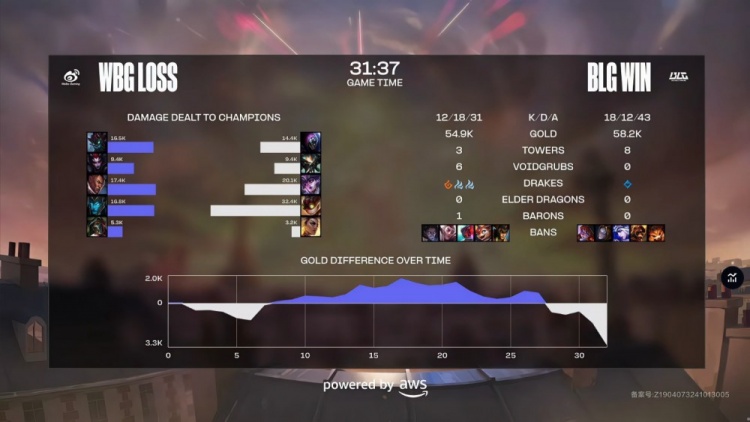 后期小龙团,Xiaohu卢锡安将Elk吉格斯W当作果果狂吃炸死自己,BLG摧枯拉朽打出2换5团灭WBG,一波推平WBG基地先拿赛点。