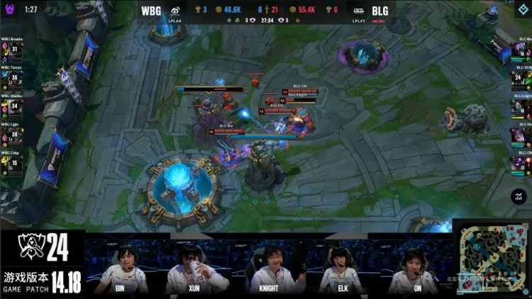 直播吧10月26日讯 2024全球总决赛淘汰赛半决赛首场比赛,由LPL夏季赛冠军BLG对阵LPL夏季赛亚军WBG。