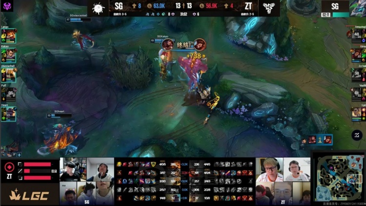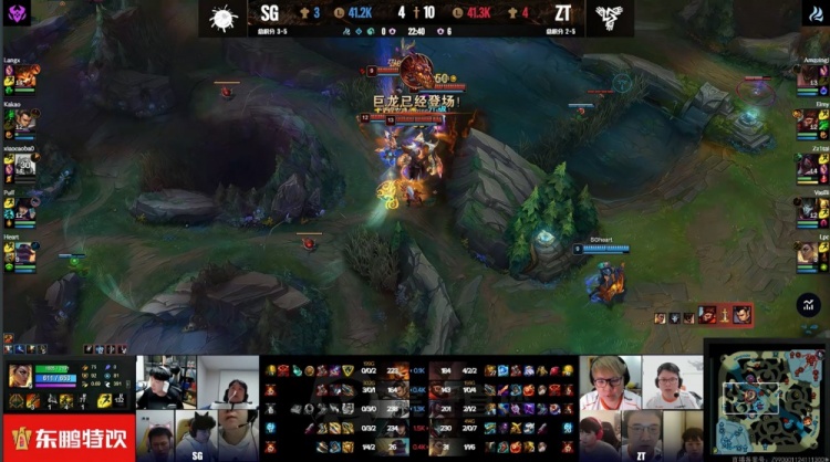 后期老龙刷新,姿态队中野残血只能撤退,宣告孤立无援被冲掉人头送给泡芙女警,后续泡芙队开老龙,AJ+姿态进龙坑双双阵亡,Kakao稳稳惩掉老龙,狼X纳尔神掌拍不停,泡芙队轻松打出1换4,一波推平姿态队基地拿到比赛胜利。