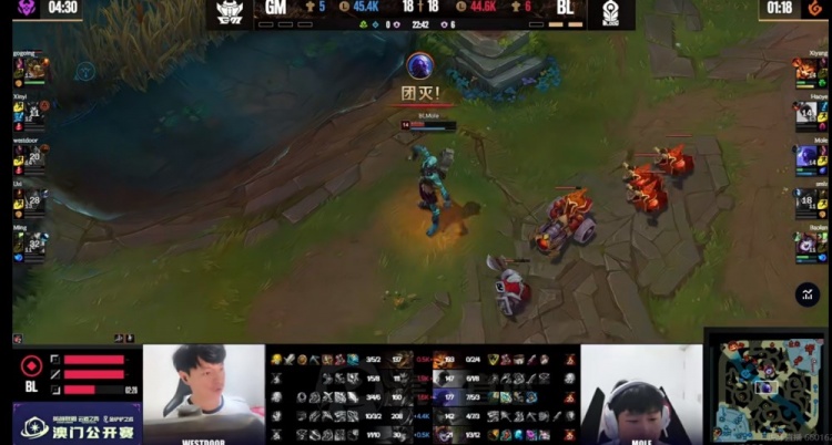 【6:45】BL拿下第一批巢虫之后haoye盲僧绕后,配合Xiyang纳尔击杀掉了Gogoing鳄鱼!