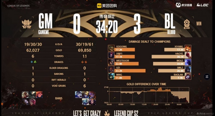 【19:10】BL三人越上强杀西门卡牌,GM则是拿下二小龙!本局火龙魂!Gogoing鳄鱼想守下二塔结果被三人强杀!双方对换一路,BL推掉上路高地塔,GM直接推掉了对手下路高地!