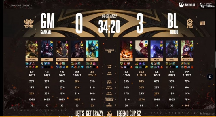 BL:上单Xiyang、打野haoye、中单Mole、下路Smlz、辅助Baolan