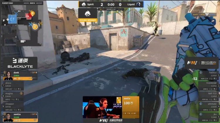 第二局TL全员Eco强起道具,Spirit五人冲A大,TL四人A小看A大,donk与magixx冲进包点,TL刷屏Spirit,残局2V2,donk在A下包,,zont1x看屁股带走NAF,总监走CT家来A,小手枪被A大交叉火力带走,Spirit2-0TL。