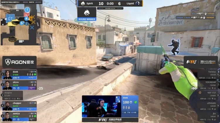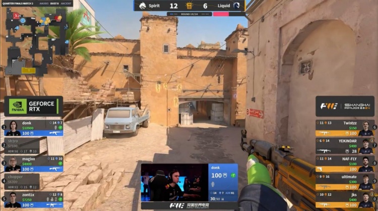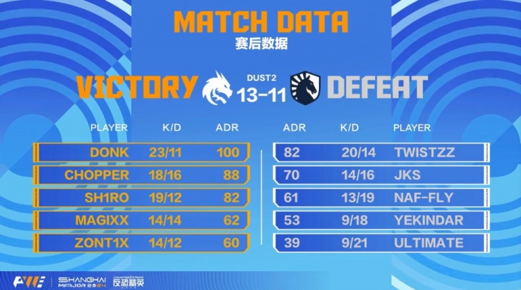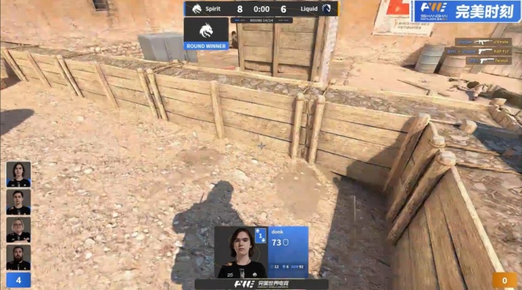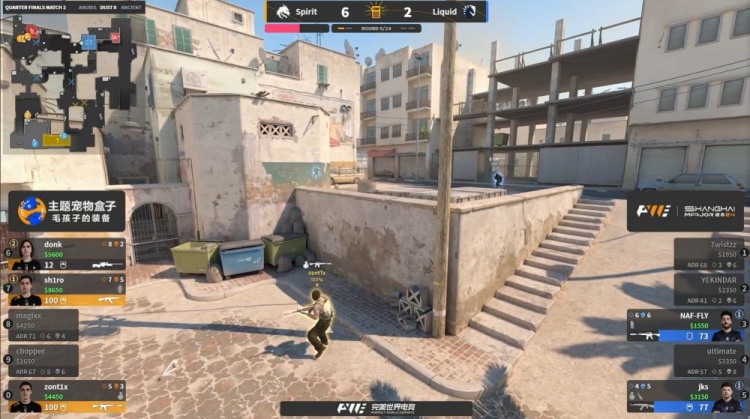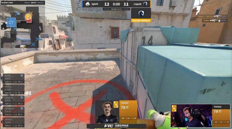 易边再战,手枪局donk双枪双杀,Spirit依靠donk与sh1ro的出色发挥连战连捷,将比分扩大至12-6,赛点局donk四杀但没能拆包终结比赛,后续YEKINDAR不断冲A拿信息,TL将比分追至12-11。