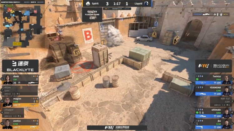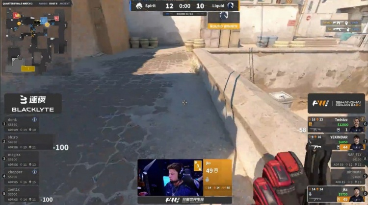 直播吧12月12日讯 2024CSGO上海Major来到淘汰赛阶段,今日第二场比赛由Team Spirit对阵Team Liquid。